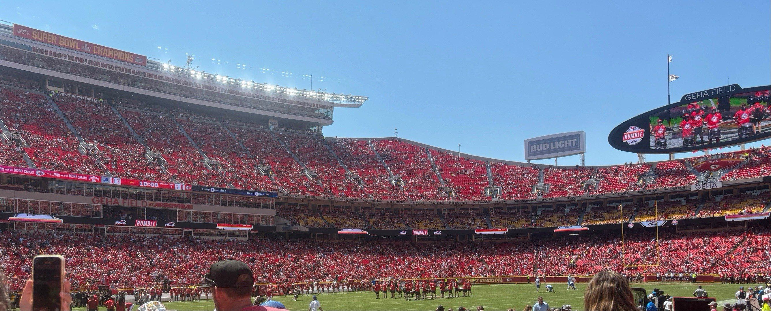 Ok so this particular stadium was full of red, as the Chief fans come out in droves! But the sprinkling of blue left victorious at the end thanks to a well-placed kick. I got super lucky in my seat choice, and the best action happened right in front of us. What a fun day.